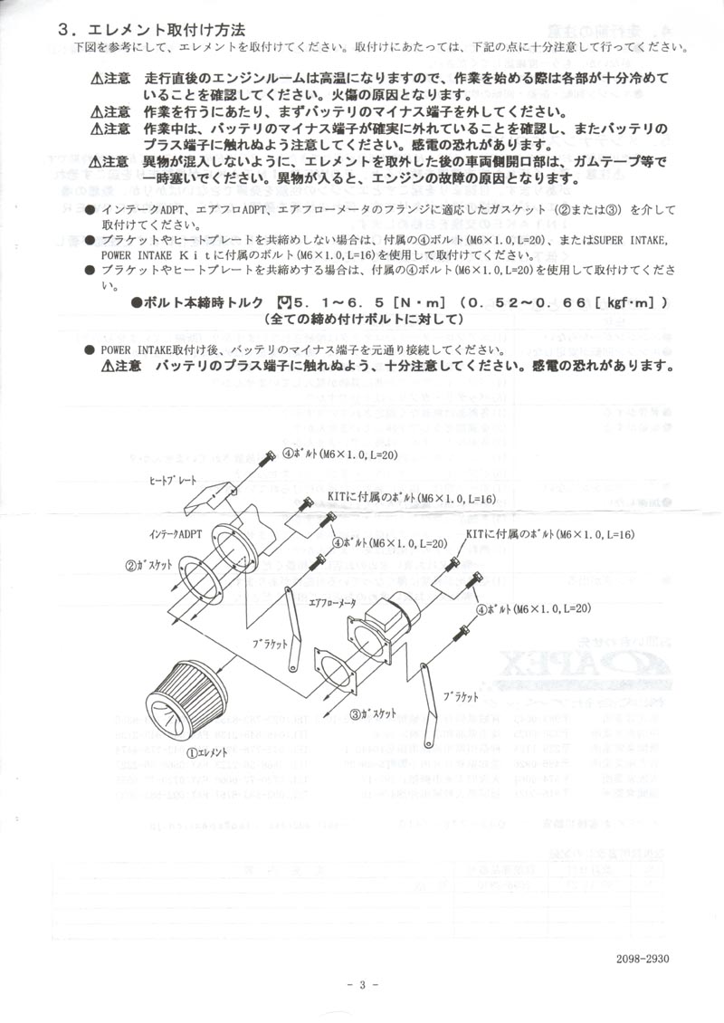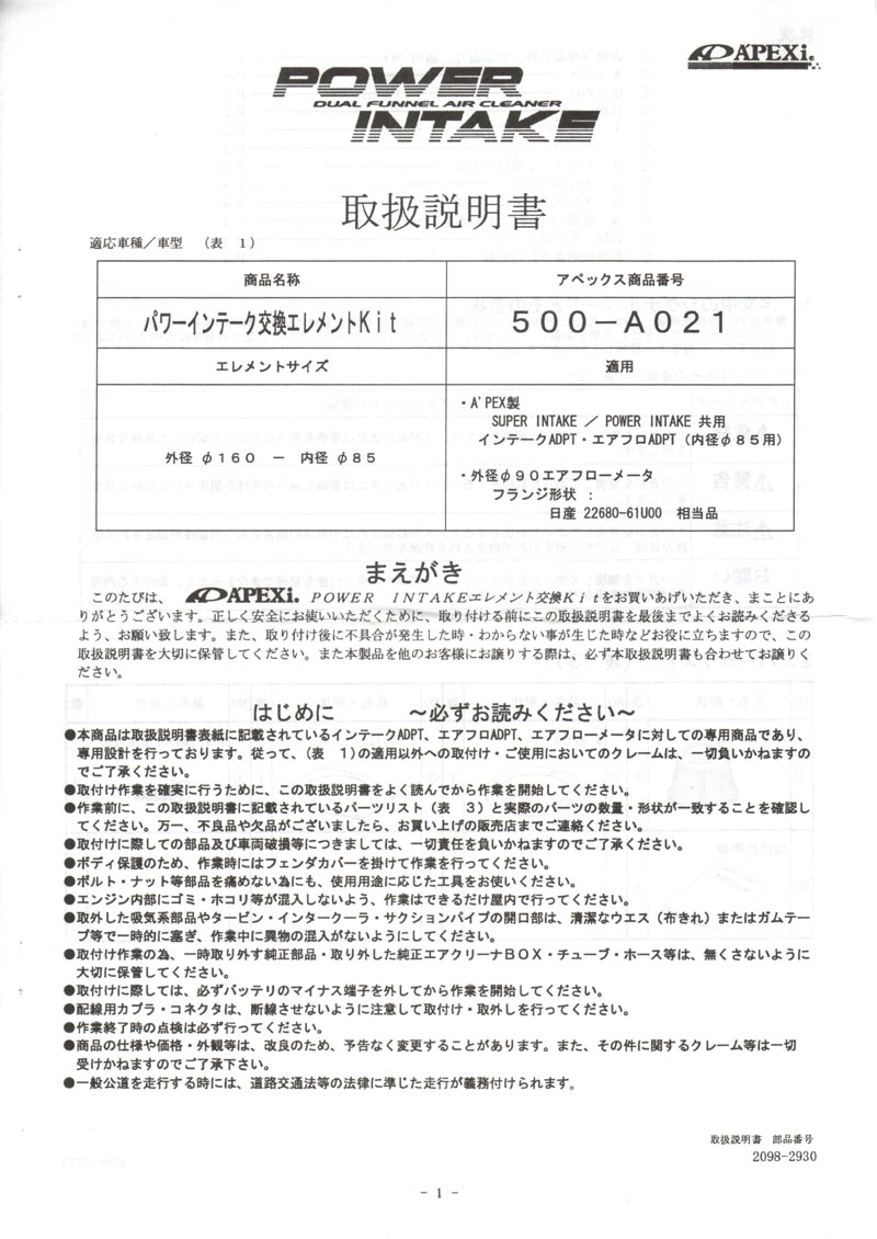○APEXi POWER INTAKE エレメント交換 KIT ¥5,775(商品コード:500-A021)