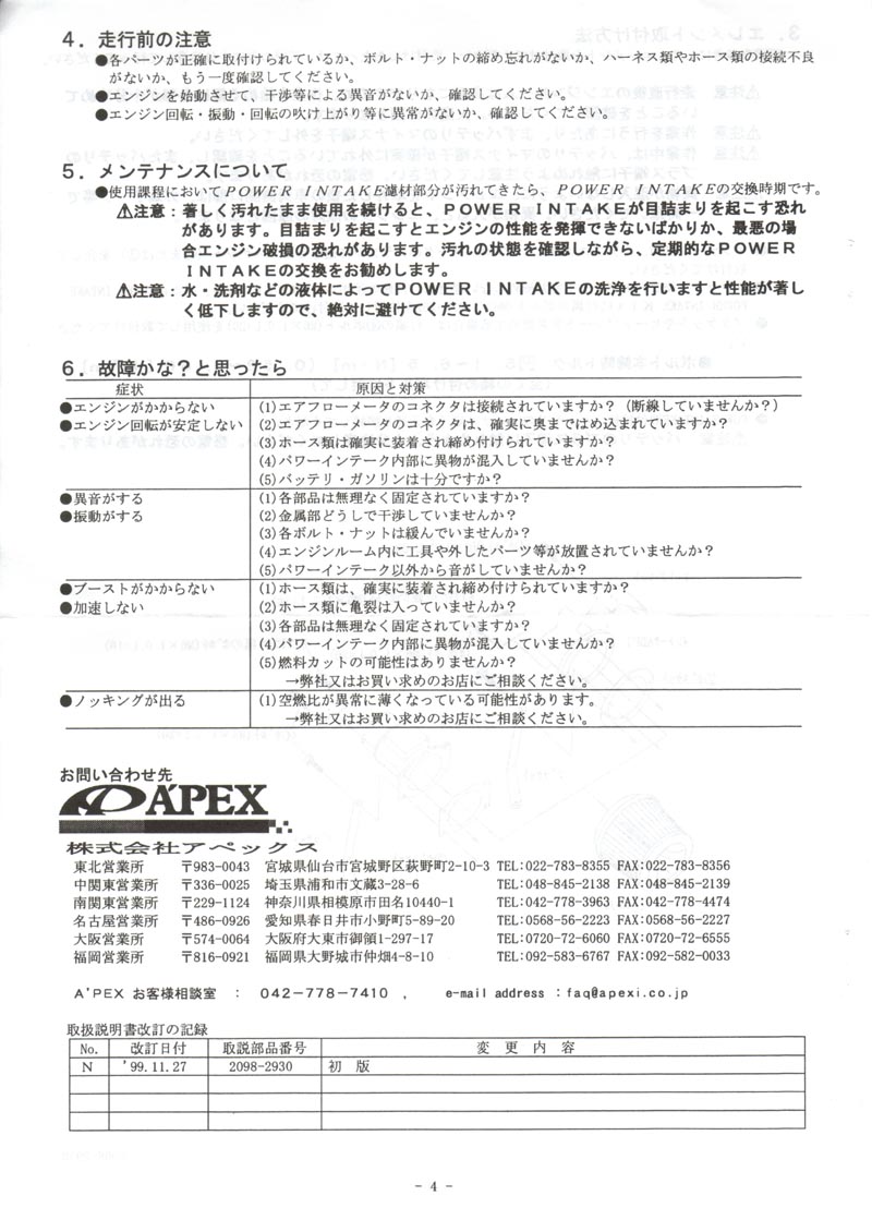 ターボが働いている時は、シューッっと大きな音がする。取り扱い説明書( その1 その2 その3 その4 その5 その6 )