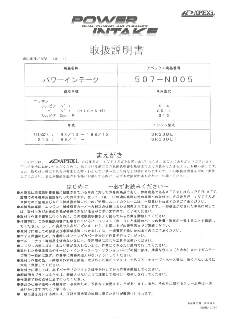 ○APEXi POWER INTAKE ¥14,780(商品コード:507-N005)